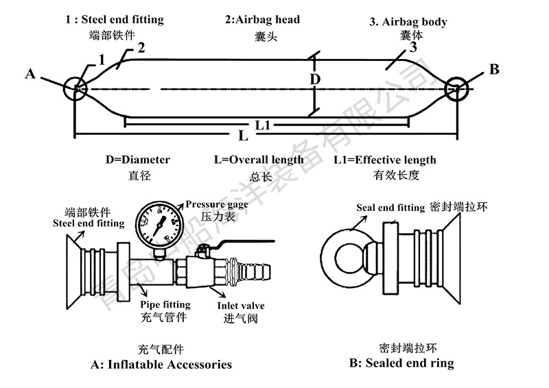 氣囊整體骨架采用交叉整體纏繞,結構合理,紋路清晰,無任何接縫, 載量高,安全系數(shù)大,比搭接式(地滾式)工藝,多載重20%。